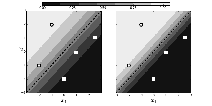 # Scaling can arbitrarily increase the probabilities of points near the # decision boundary.