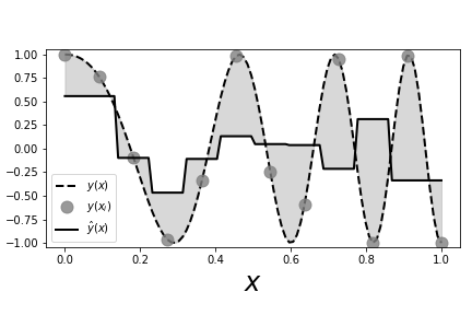 $$ \begin{align*} \textnormal{ISE}(\hat{p}_h,p)&=\int (p(x)-\hat{p}_h(x))^2 dx\\\ &= \int \hat{p}_h(x)^2 dx - 2\int p(x) \hat{p}_h dx + \int p(x)^2 dx \end{align*} $$The problem with this expression is the middle term [^last_term], [^last_term]: The last term is of no interest because we are only interested in relative changes in the ISE.