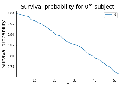 _=ax.set_title('Survival probability for $0^{th}$ subject',fontsize=18)
